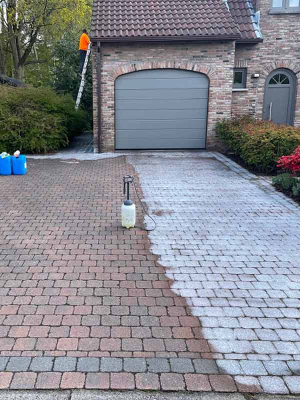 Nettoyage des extérieurs : LE FOURN Rénov en Belgique : Nettoyage et traitement anti-mousse sur allée, klinkers, pierre bleue, pavé, muret, terrasse … Imperméabilisation allée, pavé … intervention en BELGIQUE: région Flamande, Wallonne et Bruxelles….