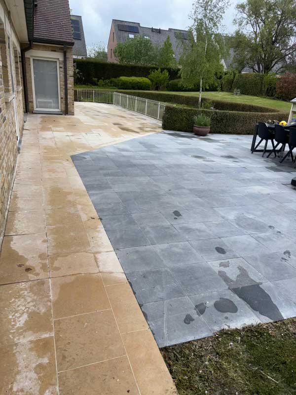 Après la rénovation et le nettoyage de vos sols extérieurs, nous vous proposons de prolonger leur éclat et de les protéger durablement grâce à l’application d’un traitement hydrofuge incolore.